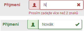 - Červený okraj s chybou, pokud je chyba ve vložených datech