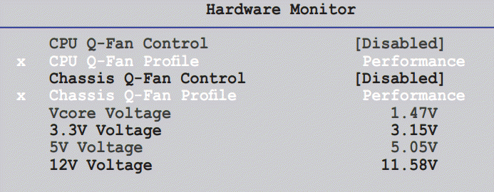 CPU Q-Fan profile tam je Performace a ještě dvě možnosti když to je povolený Fan control hore tak mě to skočí pak do BIOSu když to nezakážu.Všude se to tváří že tam žádnej točák není,ostatní tam vidět jsou normálně.(co tam byli dřív točáky pod 1500ot tak to fachalo ok a vidět byli normálně)