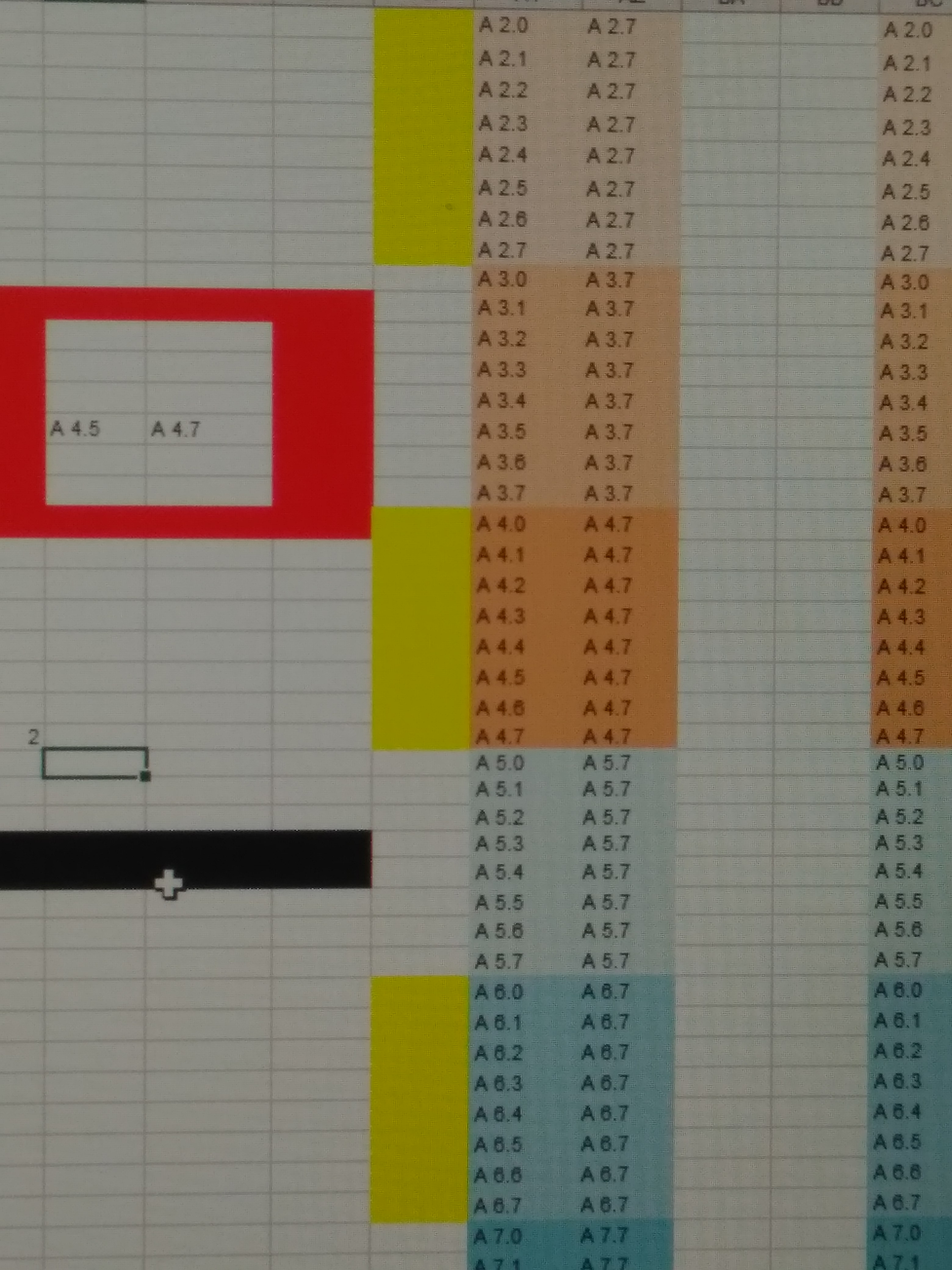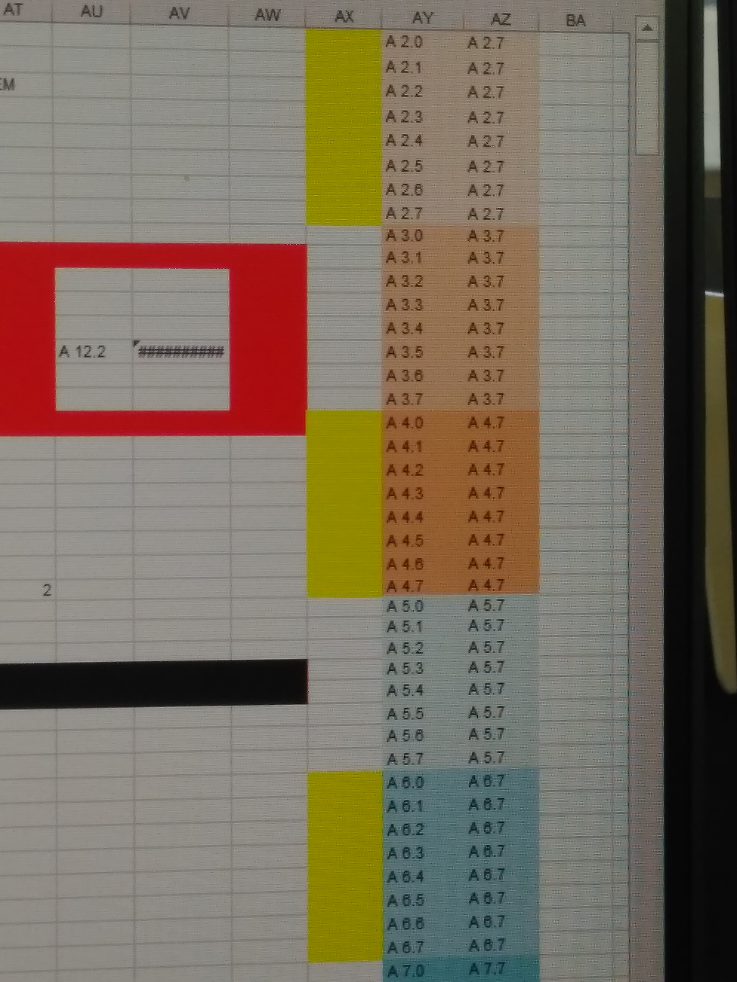 v sloupci AY mám všechny tyto hodnoty výstupů ve sloupci a ve sloupci AZ mám hodnoty, které chci k tomu danému výstupu skutečně přiřadit, protože třeba k vygenerovanému výstupu A 2.0 až A 2.7 chci vždy A 2.7 atd......