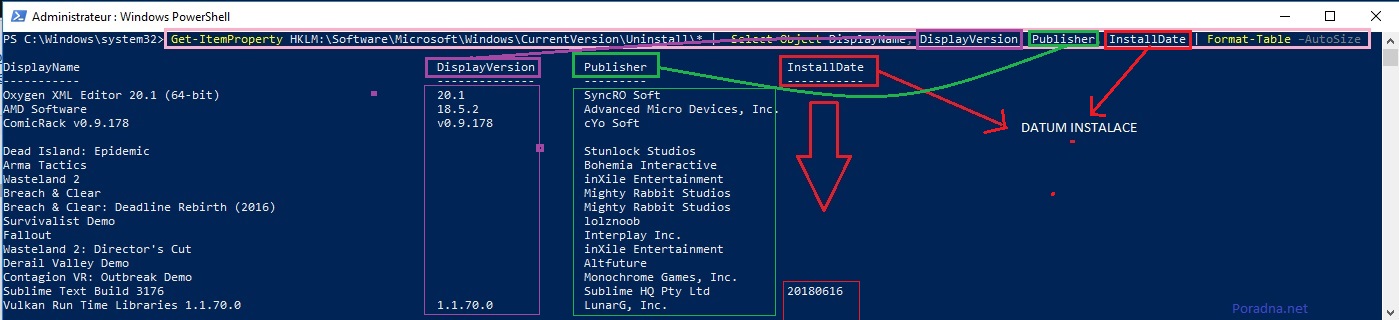 // Pardon, cely obrazek by se mi nevlezl, nebo by zabral zbytecne moc mista, na obrazku datum videt nejde je nize, na svém pc ho urcite uvidis ;-) Datum instalace je ve formatu "ROK/MESIC/DEN", jako 20180616