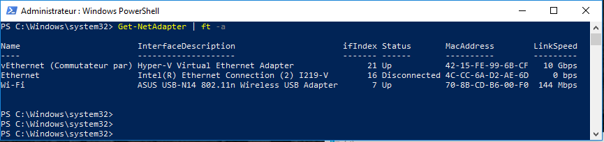 Get-NetAdapter | ft -a