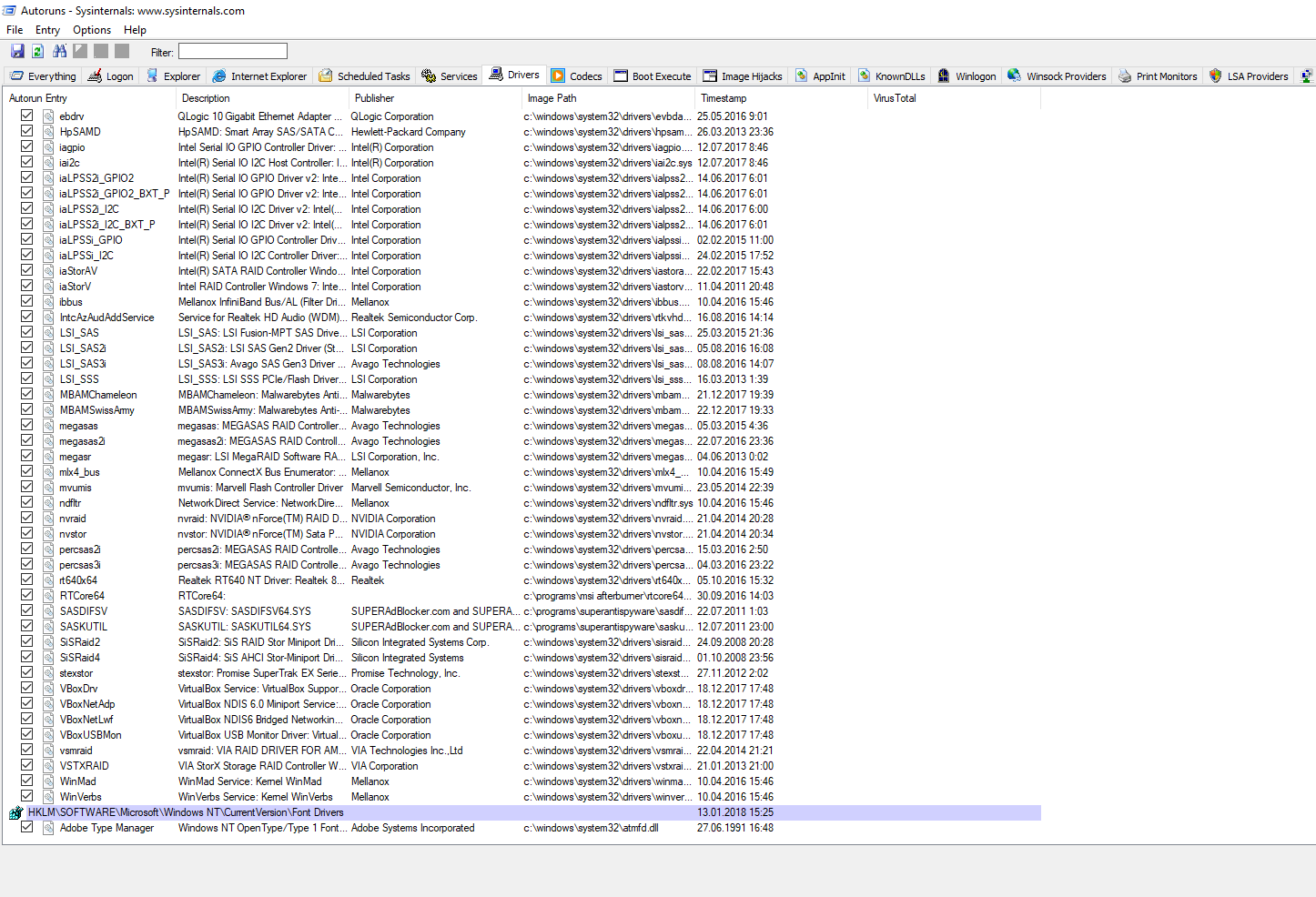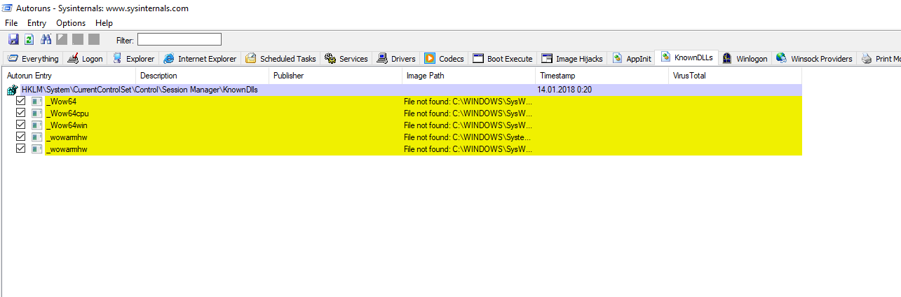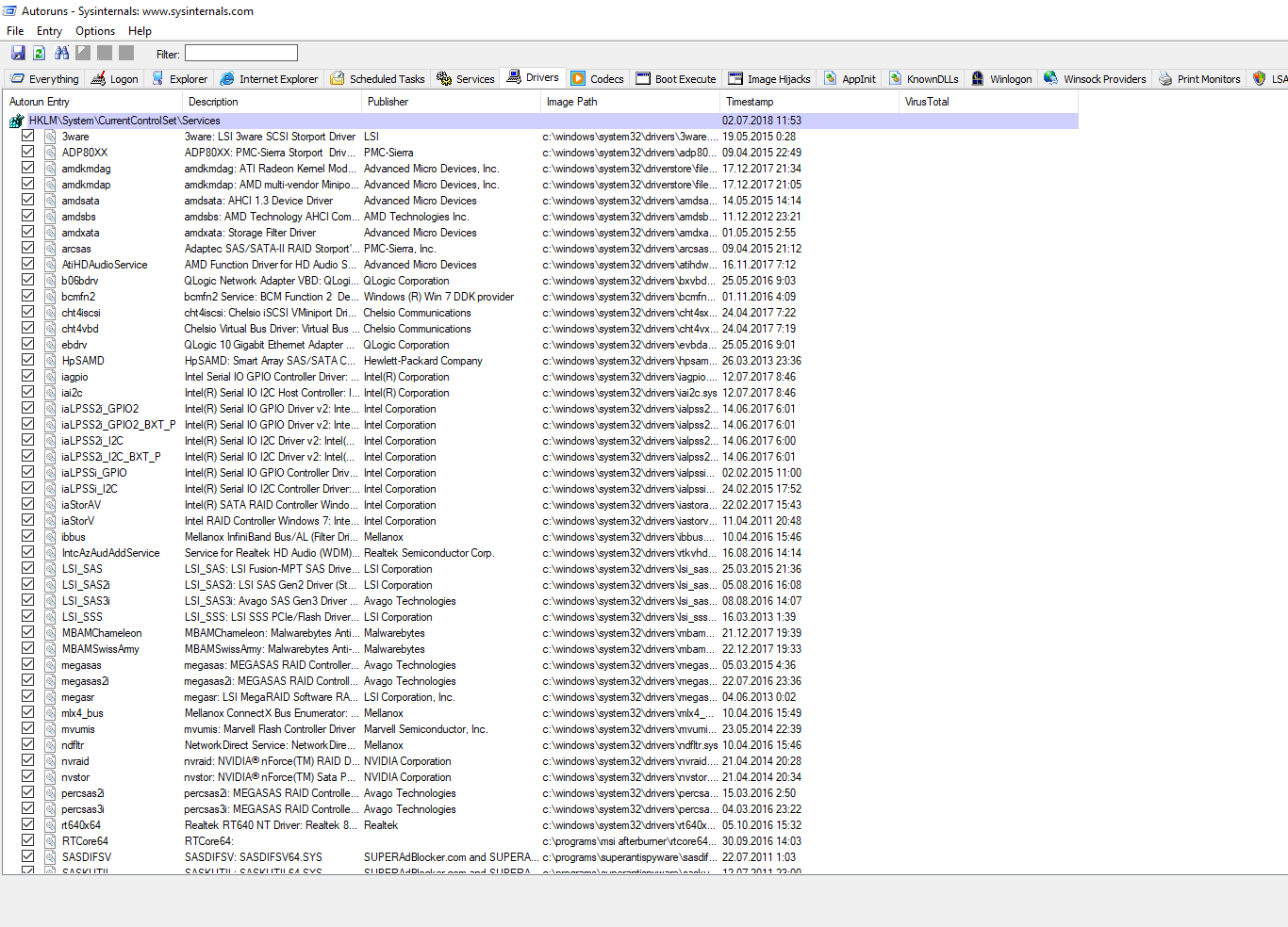 Sprav cestou autorunsx64.exe, klik myšou, ako Správca!!!!, hore lišta - Save - súbor s príponou *.*.arn. Môže mať obsah 10-15MiB.