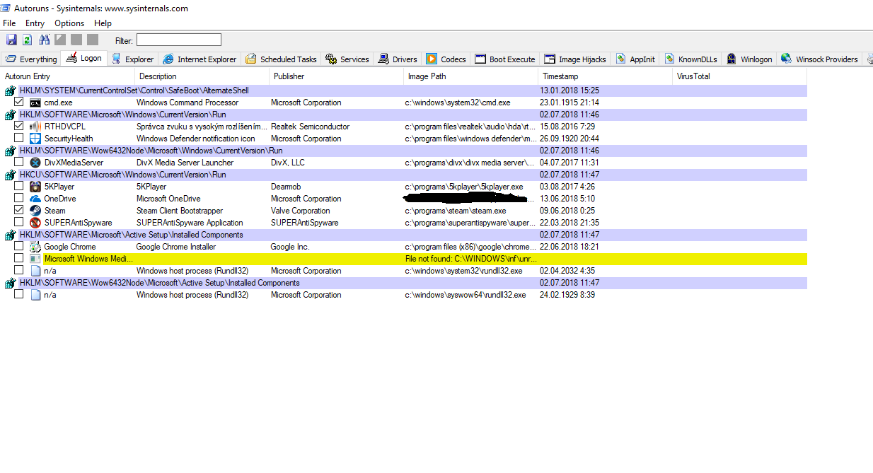 No tak uz chápem, stiahol som ten Autoruns a aj zapol (až dnes som mal cas sa tomu venovať). Takže ono tam toho je velmi vela. Na karte logon mozem úplne vsetko zakazat? To isté aj scheduled tasks?
