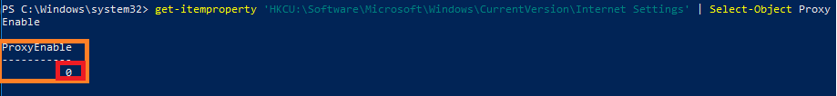 get-itemproperty 'HKCU:\Software\Microsoft\Windows\CurrentVersion\Internet Settings' | Select-Object ProxyEnable