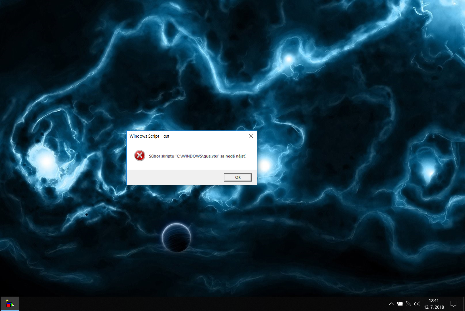 Zdravím. Potrebujem poradiť, už dlhšie sa mi po zapojení adaptéra zobrazí že súbor skriptu C:\WINDOWS\que.vbs sa nedá nájsť . Neviete čo to môže znamenať alebo ako sa toho zbaviť? ďakujem je to aj v prílohe
