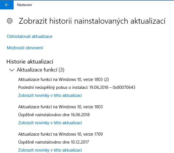 windows je aktuální, už mi žádné updaty nainstalovat nejdou (nebo spíš nemůžou, koukám že se jsem z nějakého důvodu měla neúspěšný pokus o aktualizaci, viz příloha)