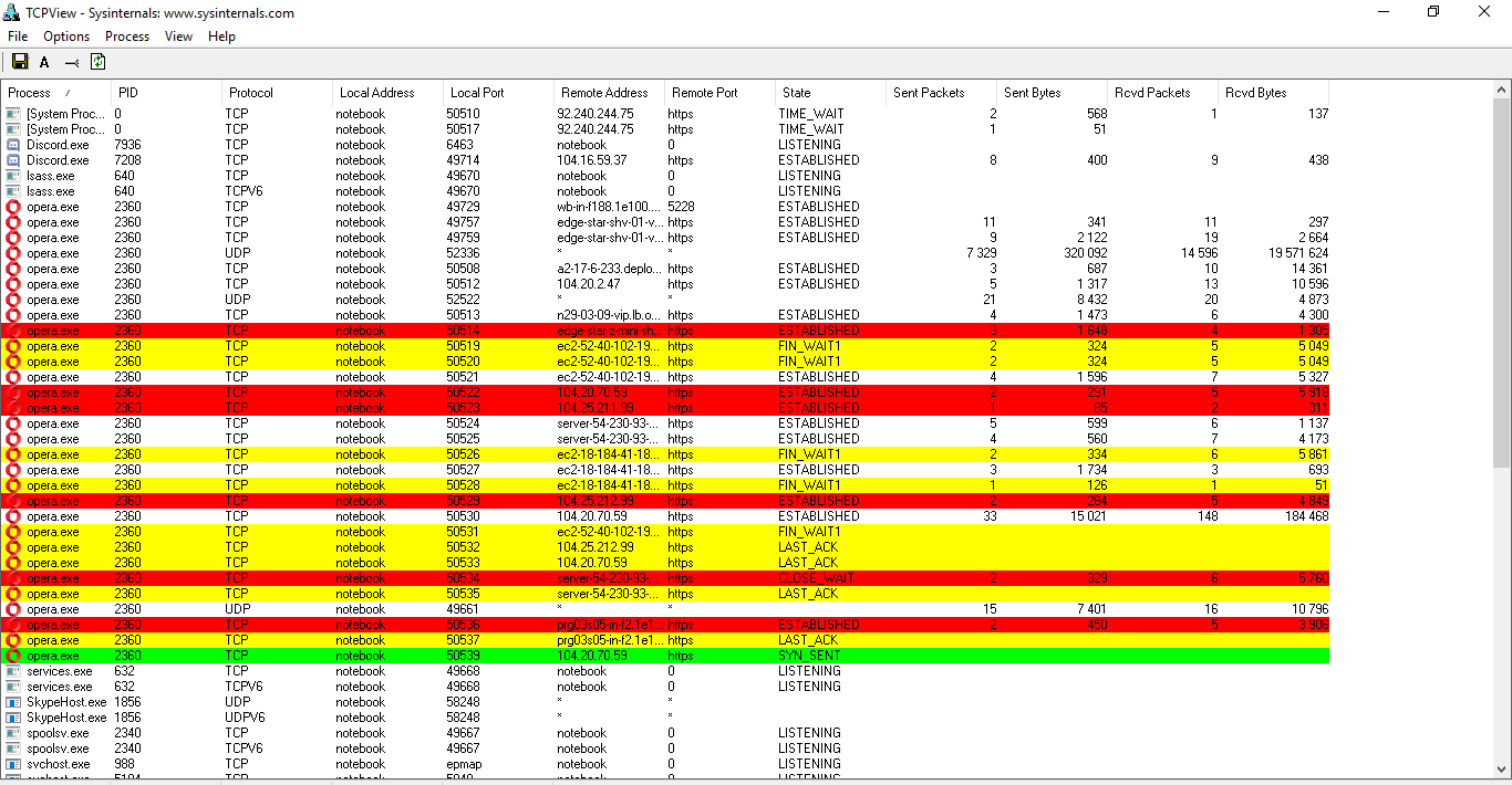 první dva nečitelné system procesy se ti připojují kamsi na slovensko. když nejde roztáhnout sloupec s názvem procesu, tak aspoň rozkliknout co to píše.