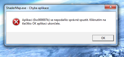 Zdravím, mám takovou chybičku. Před pár dny jsem si stáhl do svého počítače prográmek "Shadermap 4" (pro texturování) ale o to nejde. Jde o to že když jsem ten program nainstaloval a chtěl spustit, tak ihned potom na mě vyběhla hláška viz. obrázek. Zkoušel jsem už několik způsobu z internetu a žádný nepomohl.