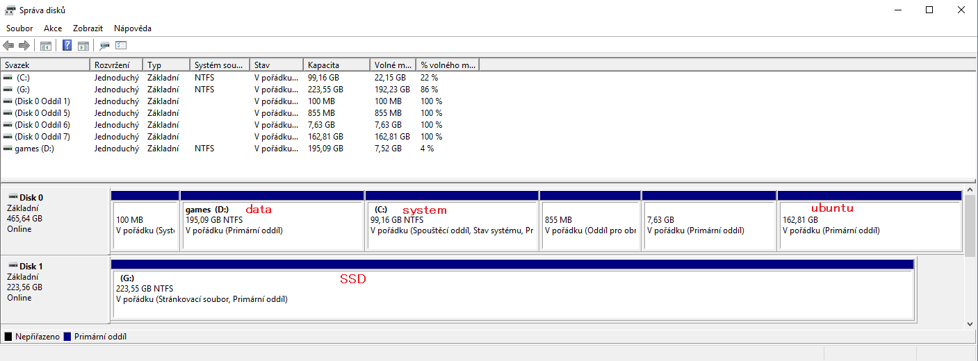 Na tom SSD systém je. Jak píšu, normálně jsem na něm fungoval. A podle screenshotů vidíš, že tam min…
