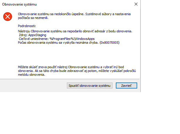 To neni veľmi dobré. :/ Tak beži iný bod obnovy, uvidim čo to spravi teraz.. Skúšal som už aj to čo som nedávno inštaloval odinštalovať no márna snaha..