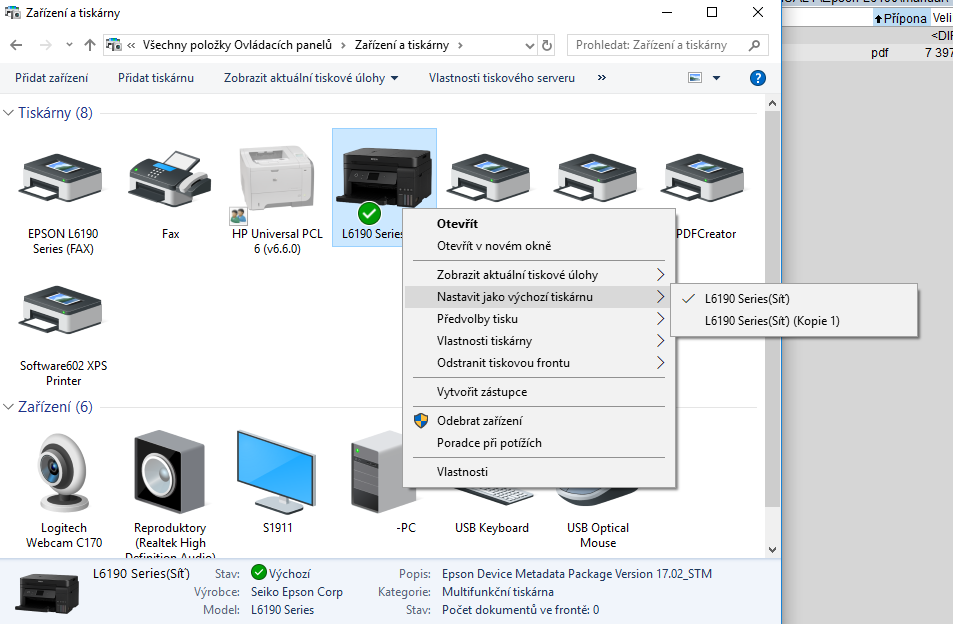 Na W10 jsem instaloval drivery diskárny Epson L6190. Nejdříve jsem ji měl na wifi, ale instalace se "nepovedla", tak jsem to udělal znova po připojení tiskárny k LAN, jako opravu, reinstalaci. To už dopadlo OK