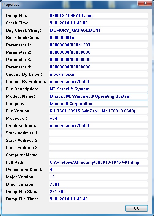 bsod memory management: podezírej nekompatibillní ramku. buď schovaný windows memory diagnostic, neb… poslední