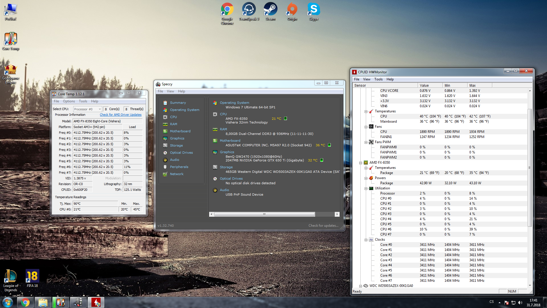 Hraju pouze dvě hry , LoL a FIFA 18 - tu mám pochopitelně koupenou na originu, mám i obal :D nikoliv žádný download..teď koukám na originu, mám na ní nahráno 148hod, nikdy mi to neudělalo, udělá to jen teď. Jako ten chladič nevím, drží tam napevno, je nacvaklej tak jak by měl, znovu do toho rýpat nechci :/ FIFU sice moc nehraju, ale jako je to nějáký divný..dělá to fakt od července, nikdy předtím se mi tohle nestalo..a spadne to většinou fakt na konci zápasu..jak říkám, kontroloval jsem to vkuse během hry, začátek zápasu začínal na 69C, pak se to postupně po stupni zvedalo, v polovině zápasu bylo 76C a ke konci 83C (v červeném), kdy už mi to opět vyplo PC. Po opětovném zapnutí se mi opět vypnul, opět jsem minutu počkal a vše dobré. Nevím co s tím no...asi to zatím nechám tak, stejně už bude vycházet fifa 19 a uvidím :D