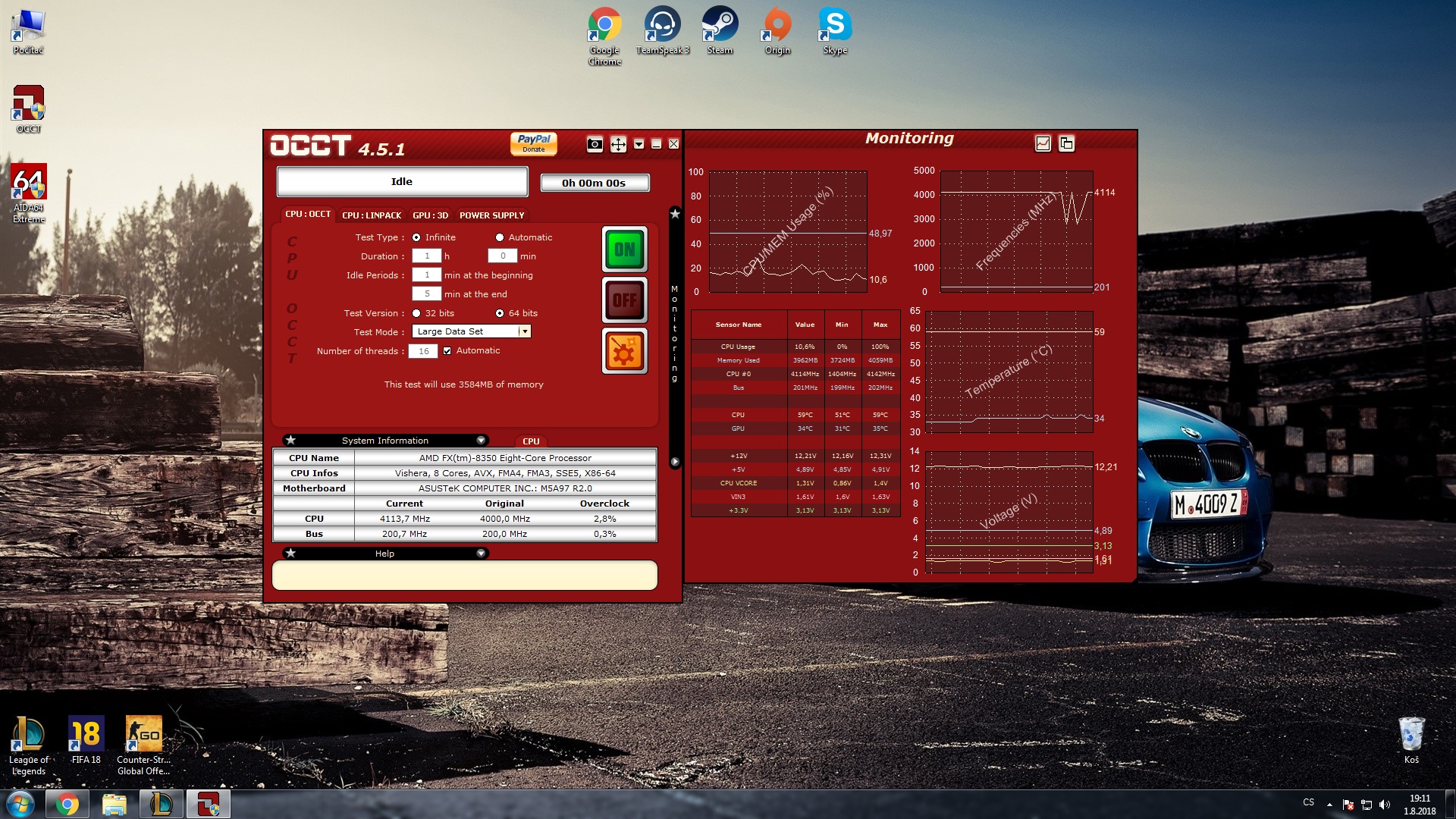 Zdravím, potřeboval bych pomoc/poradit. Měl jsem procesor AMD FX-6100, který jsem měl tři roky, mám od září 2017 hru FIFU 18 na které mám nahráno X hodin a nikdy jsem neměl problém jako, co mi to dělá teď. Normálně hraju FIFU a zničeho nic se mi vypne PC..a udělá mi to pokaždé, jen tak se mi vypne..dělá to poslední tři týdny, jinak za celej rok se mi tohle nikdy nestalo...hraju ještě lolko a tam se mi nikdy tohle nestalo...ovšem dnes jsem měnil právě procesor , dával jsem místo FX-6100 novější řadu FX-8350, nanesl jsem novou pastu, vyčistil starou, vše jsem udělal tak jak umím, zapnul jsem PC a vše v pořádku..na starém CPU jsem měl 37C teplotu, deska i grafika skoro totéž, při zátěži cca 60-65C. Když jsem dnes dal ten nový procesor, tak normálně mám teplotu 25-30C, při zátěži cca 60-70C. Hrál jsem opět lolko a v pohodě, žádný problém, po týdnu zapnu fifu (protože jsem neměl náladu na to vypínání jsem jí zapl a že si zahraju, odehrál jsem první 15minutový zápas v pohodě, zapnu druhý a v polovině zápasu se mi opět vypl počítač)..jenže teď nastal problém, co jsem neměl, že když jsem ho znovu zapnul, tak se rozjel a po 5s se zase vypl..tohle mi udělal 5x po sobě, než jsem ho teda nechal 3 minuty tak, teď už zase jede. Nevíte čím to může být? že by se to přehřívalo? to je podle mě blbost, ne? :D