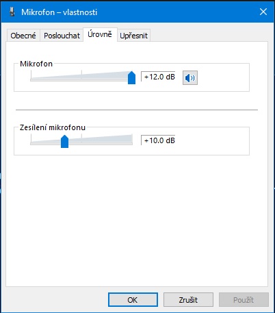 Většina mikrofonů vyžaduje to "zesílení" 10 či 20 dB, v nastavení se dá potlačit ozvěna.