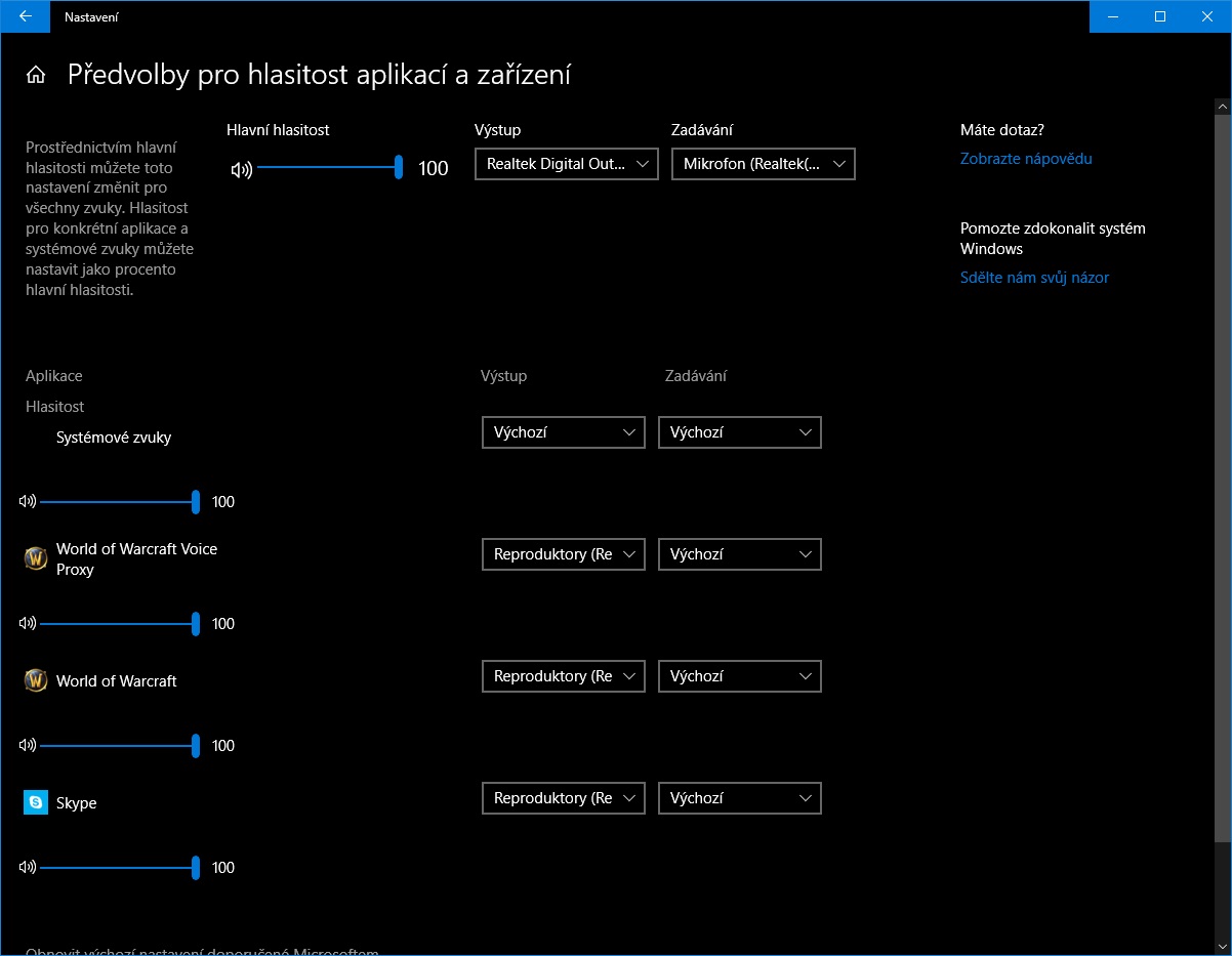 Kdyý volám na skypu Echo sound test service, tak mě není slyšet (ani to nepřehraje zpátky), jakoby mikrak nefungoval, ale ve WoW přes Voice Chat když dám sluchátka naplno a zmáčknu tlačitko na test tak se slyším ale hodně málo. Zkoušel jsem měnit hlasitost v nastaveni mikrofonu (obr 1) a když dám na "zesílení mikrofonu" víc DB tak je ozvěna a je to divny.