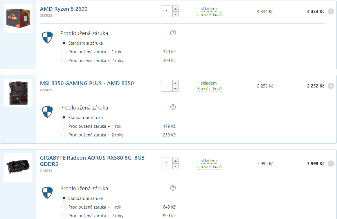 Za mě fajn. Mě osobně jsou sympatičtější GK od Sapphire (prý mají velmi kvalitní paměti Hynix), ale jde spíše o osobní preference. A za PSU od Seasonicu se trochu připlatit také vyplatí, ale Corsair je O.K. Fajn jsou rychlé paměti, to Ryzen ocení.