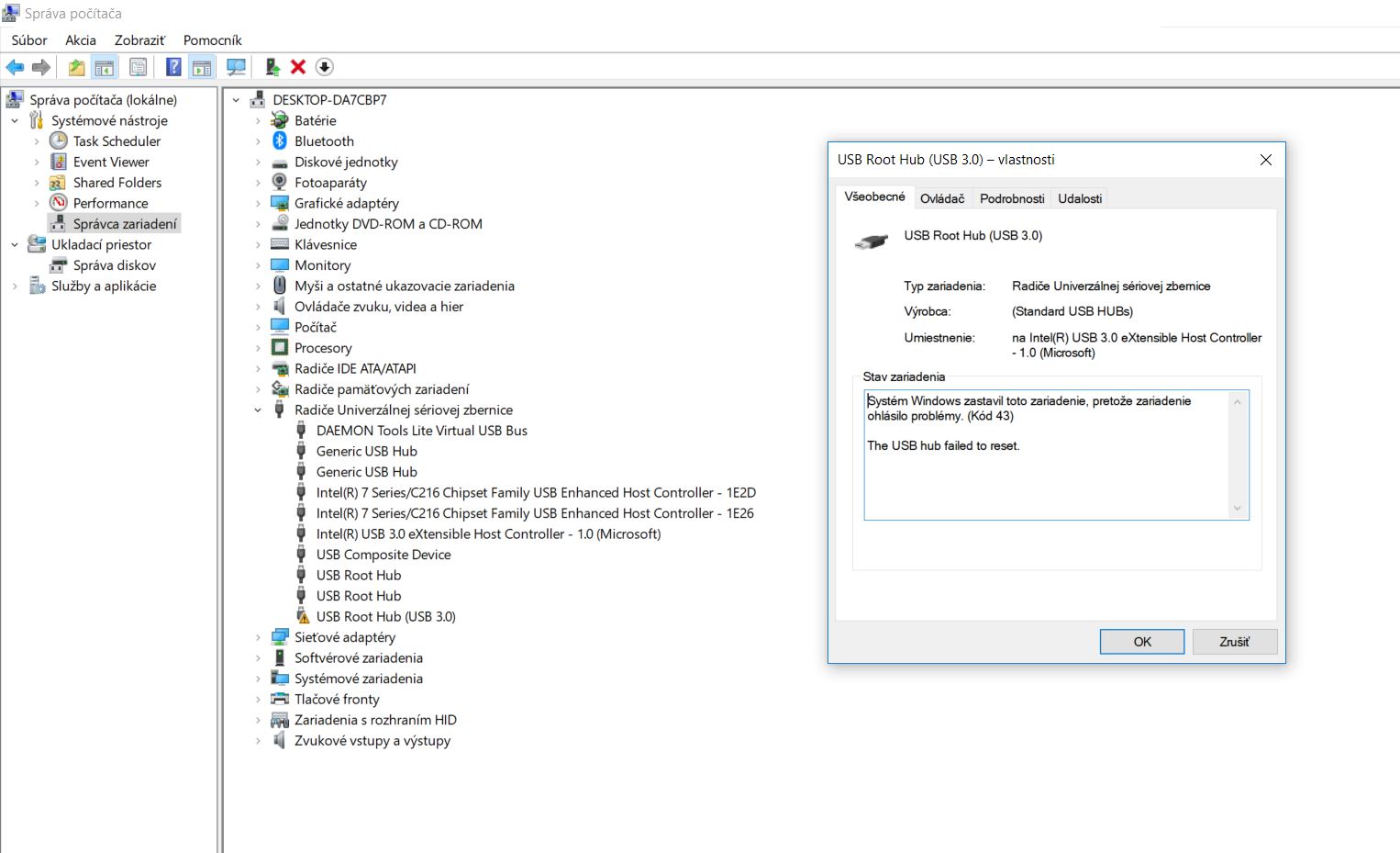 ale ve správci zařízení mezi usb vidím ještě jeden zádrhel: "daemon tools lite virtual usb" - to bych na nějakou dobu odinstaloval, jestli se to nezačne chovat normálně.