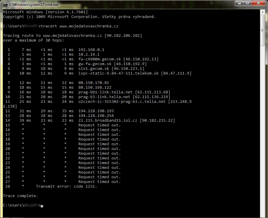 Nicméně tracert skončí na stejném místě, jako ve v příloze u příspěvku yYy, čemuž nerozumím. Asi se na onen server dostanu jinudy(?)
