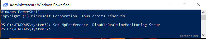 Set-MpPreference -DisableRealtimeMonitoring $true