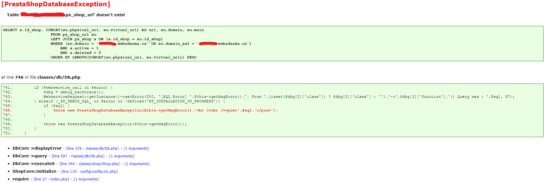 E-shop asi požaduje po Webzdarma nějaké funkce, které nejsou ze strany WZ povolené (podpora by o tom mohla něco vědět), anebo je chyba v Prestashopu. Zkusit kontaktovat někoho, kdo tento e-shop na WZ už provozuje (našel jsem např. 'mags.wz.cz'), ale nevím na jaké verzi to jede, anebo zkusit instalaci nějaké starší verze.