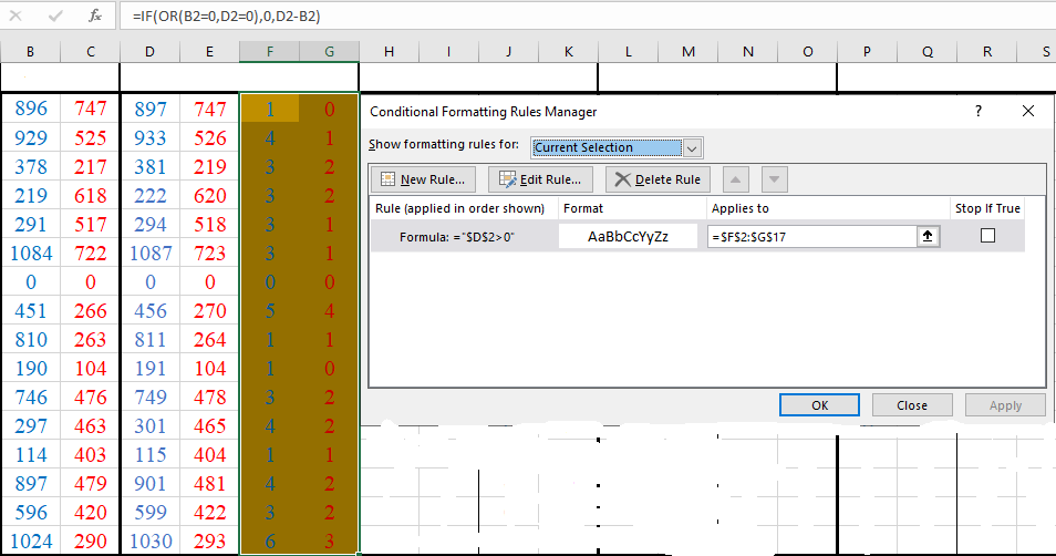 Excel doma nemam, tak jsem to zkusil v googledoc. range F2:G17 formula =$D2>0 (pokud budes obarvova…