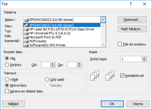 Kdesi jsem četl, že pomalé spouštění Excelu by mohlo být i tiskárnami. Mám jich několik, dvě fyzické (jednu v routeru, EPSON, předvolená, jednu HP 3015 napřímo v USB - 2 varianty ovladačů, PDF Creator + pár nepoužívaných, co se s něčím nainstalovalo asi samo nebo je to Windows 10 default). Ale netuším, co by mohlo vadit.