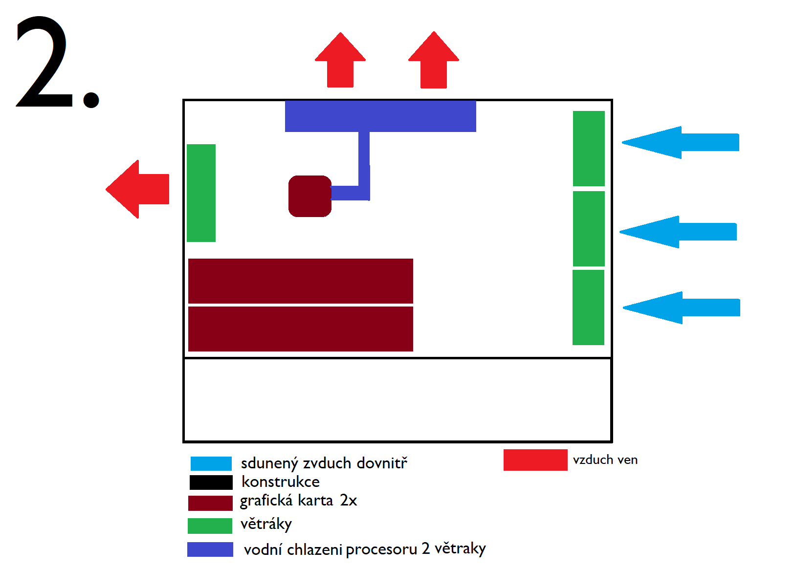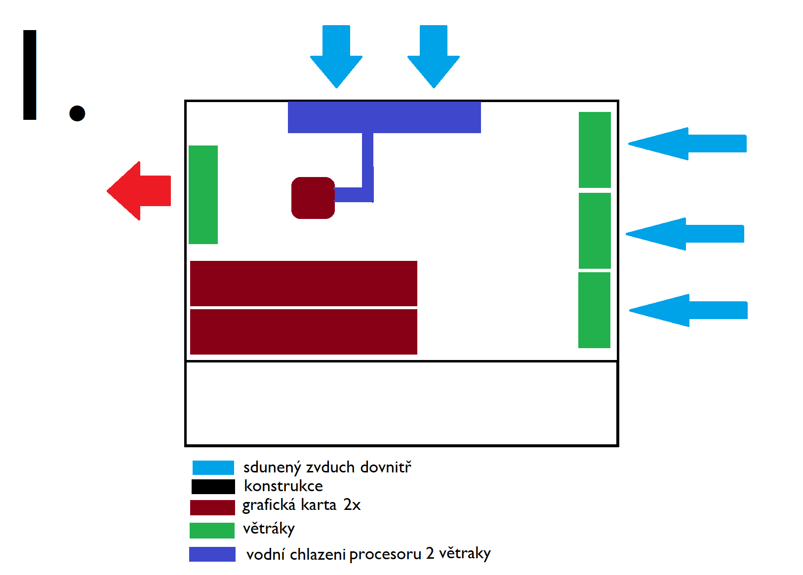 Posilám zde dvě možností které mě napadly. pokud nesouhlasíte ani s jednou navrhněte lepší řešení beze změny vodního chlazení z vrchní strany.