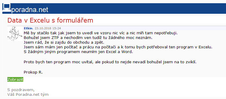 jsem chtěl si to usnadnit v tom Excelovém formuláři.