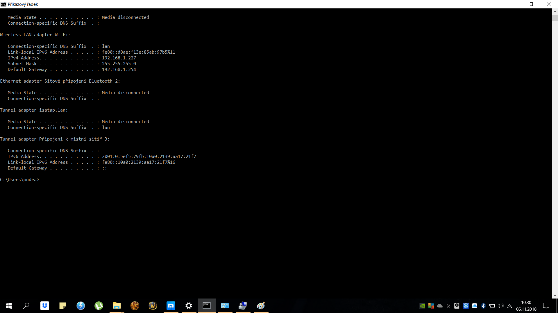ipconfig: šlo o to přečíst si konečně název síťovky, ať snáze najdeš možný obslužný program v "po spuštění".