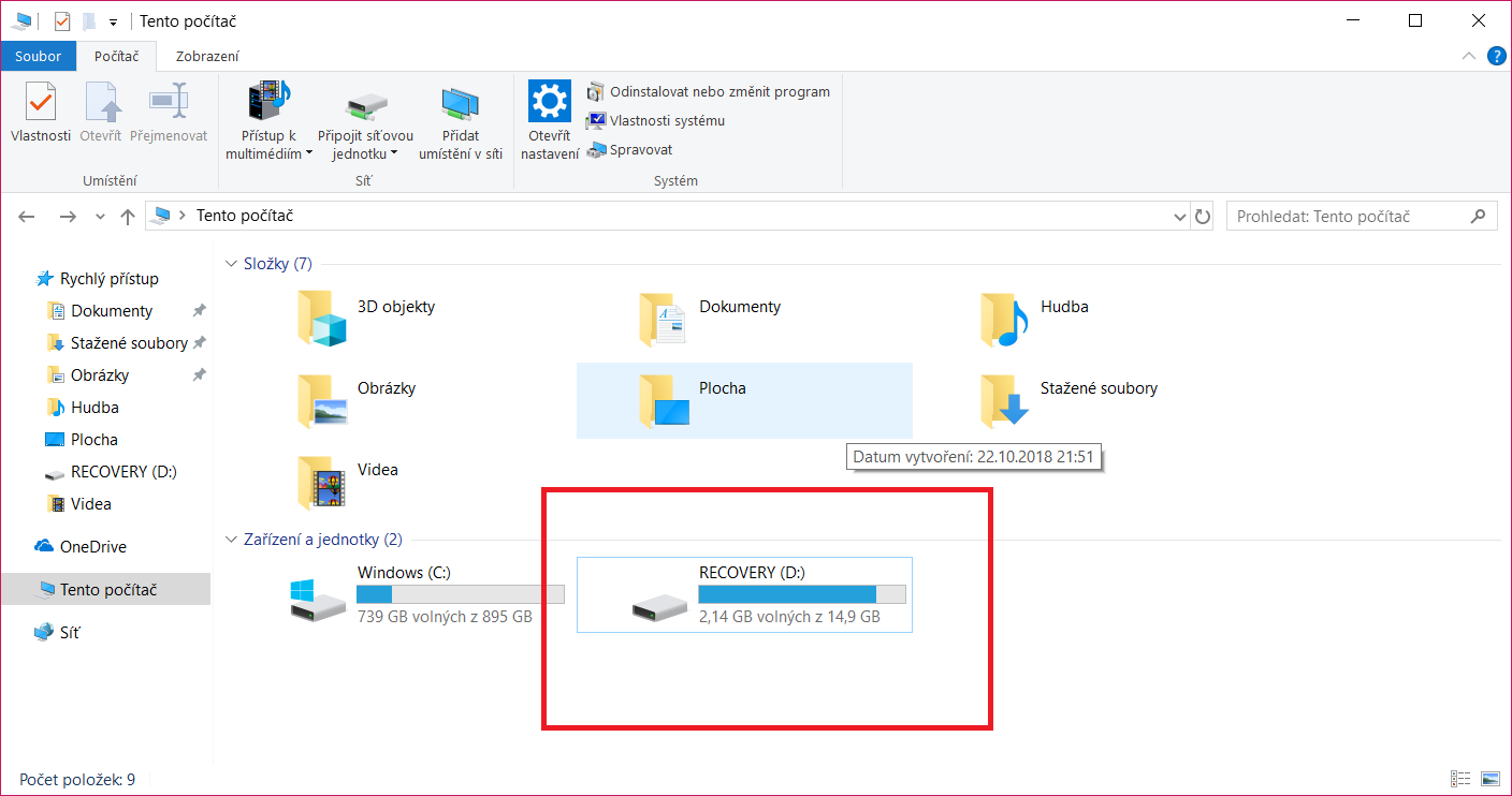 Stáhni si Minitool Partition wizard, je to free nástroj Písmenko jen odeber, recovery oddil mít přiř…