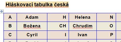 Potřeboval jsem odněkud z internetu stáhnout hláskovací tabulku a upravit ji k obrazu svému. To se mi podařilo, až na to, že jsem nedovedl zrušit podbarvení textu a tabulky (aby to bylo černé na bílém).