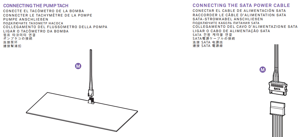 Tach se zapojuje do konektoru CPU fan. Píšou to v návodu k tomu chlazení a je nakreslený i v manuálu k základní desce. Zapojení SATA a USB kabelu je tam popsáno taky.