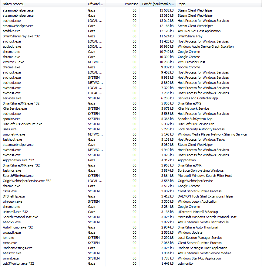 Tak nic. Můžeš to okno roztáhnout, upravit tak, aby se daly přečíst názvy procesů a dát sem obrázek.…