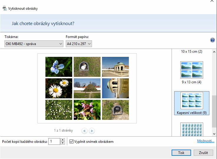 Zvláštní, že já to tam mám. Dokonce jde použít jen jeden obrázek a říct, že chci 9 kopií toho obrázku