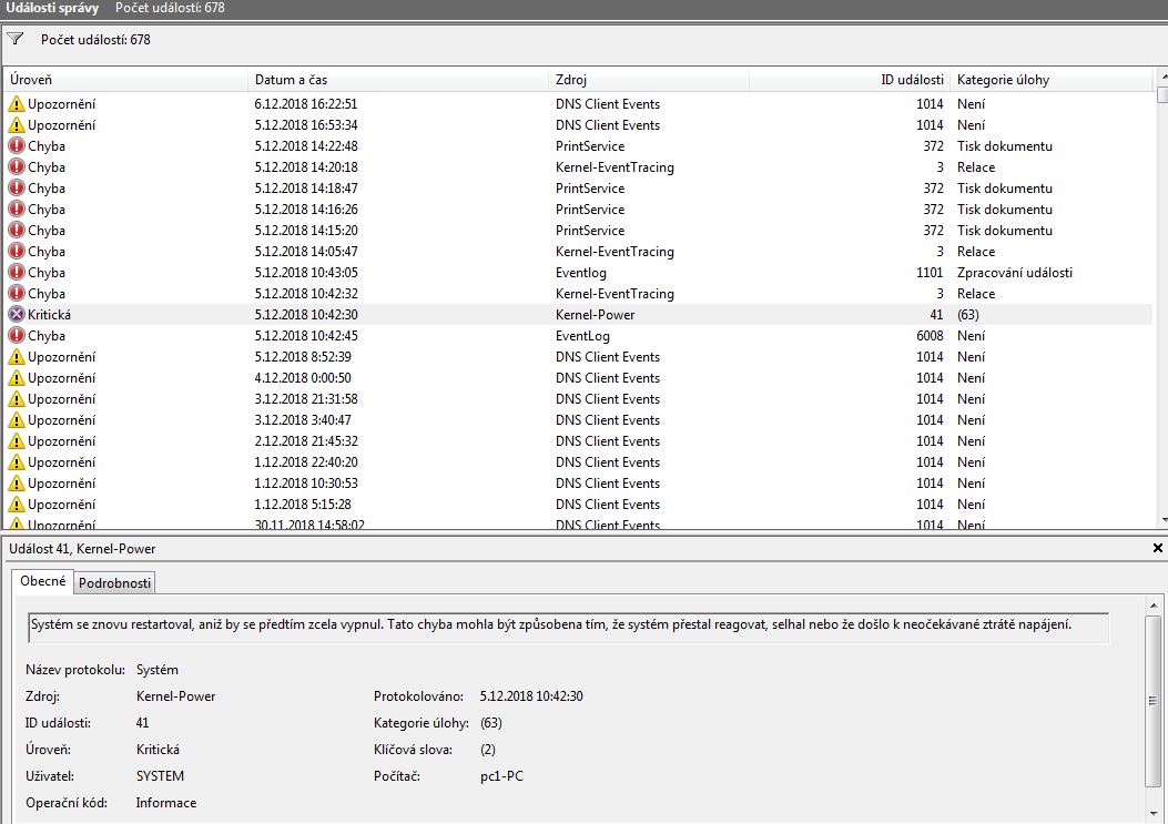 Woknos mas jaky, WIN10 ? Ve spravci udalosti jsou k tomu nejaké podrobnejsi informace ?