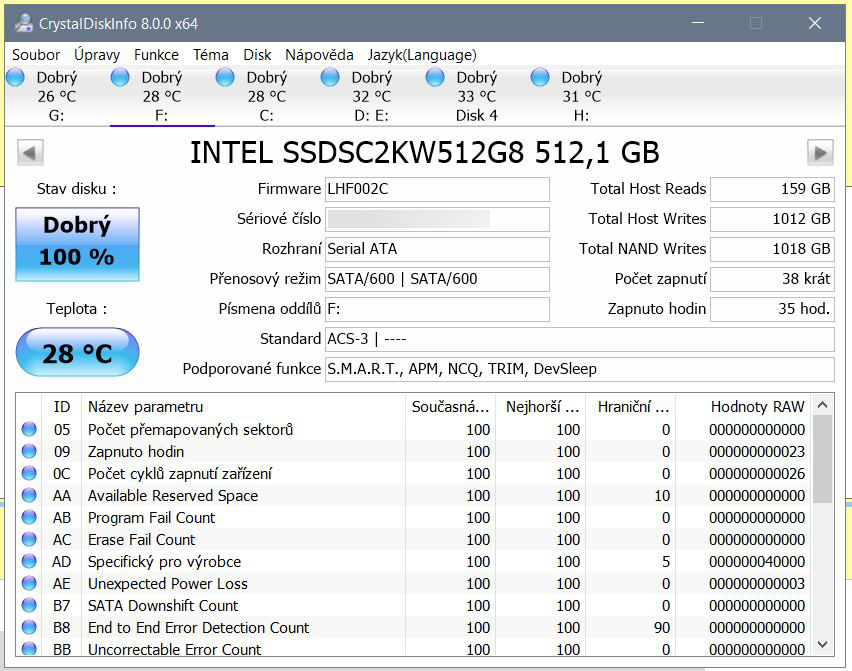 Píše, že dobrý. Neřeš to, kdyby disk chcípnul, obnovíš data ze zálohy. Nějakou životnost má každá vě…