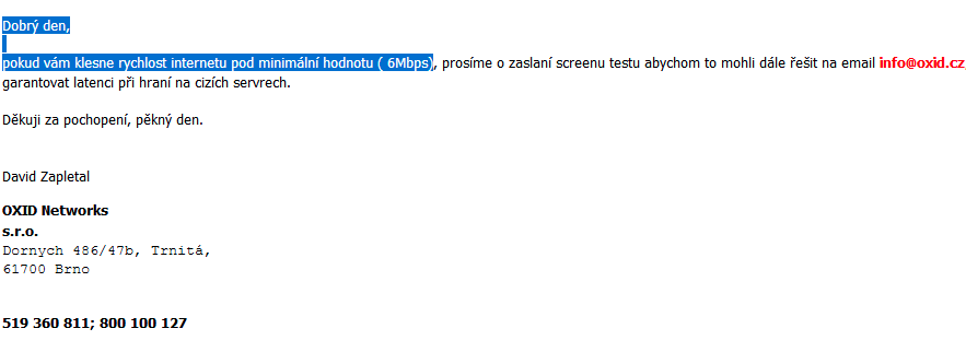 Ano to se omlouvam, ale snad vetsina lidi s oboru co tomu rozumi, mě pochopili, viz.odkaz na speedtest. Takže ještě jednou bych chtěl poděkovat všem za rady a názory. Snad se situace změní k lepšímu.