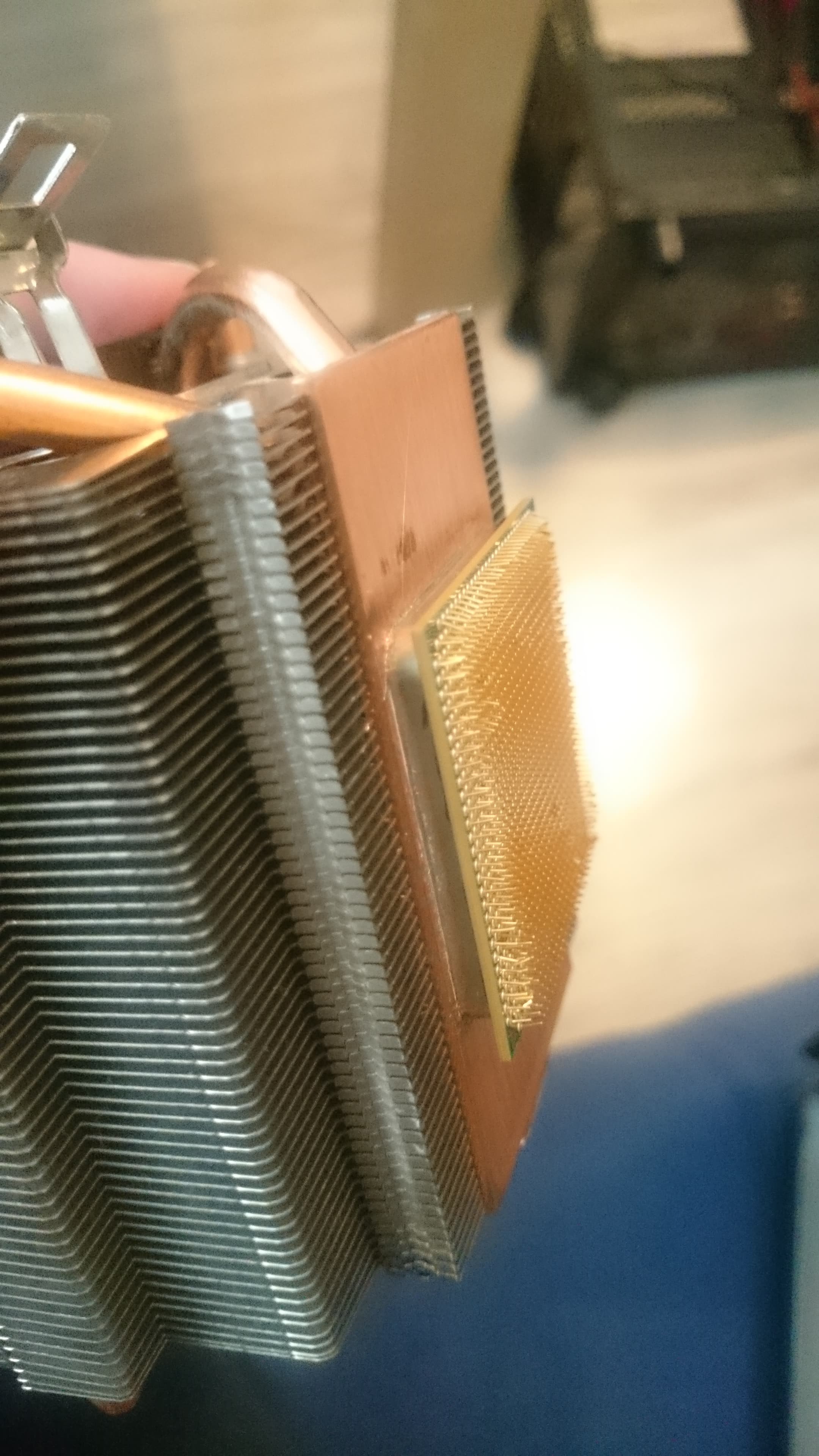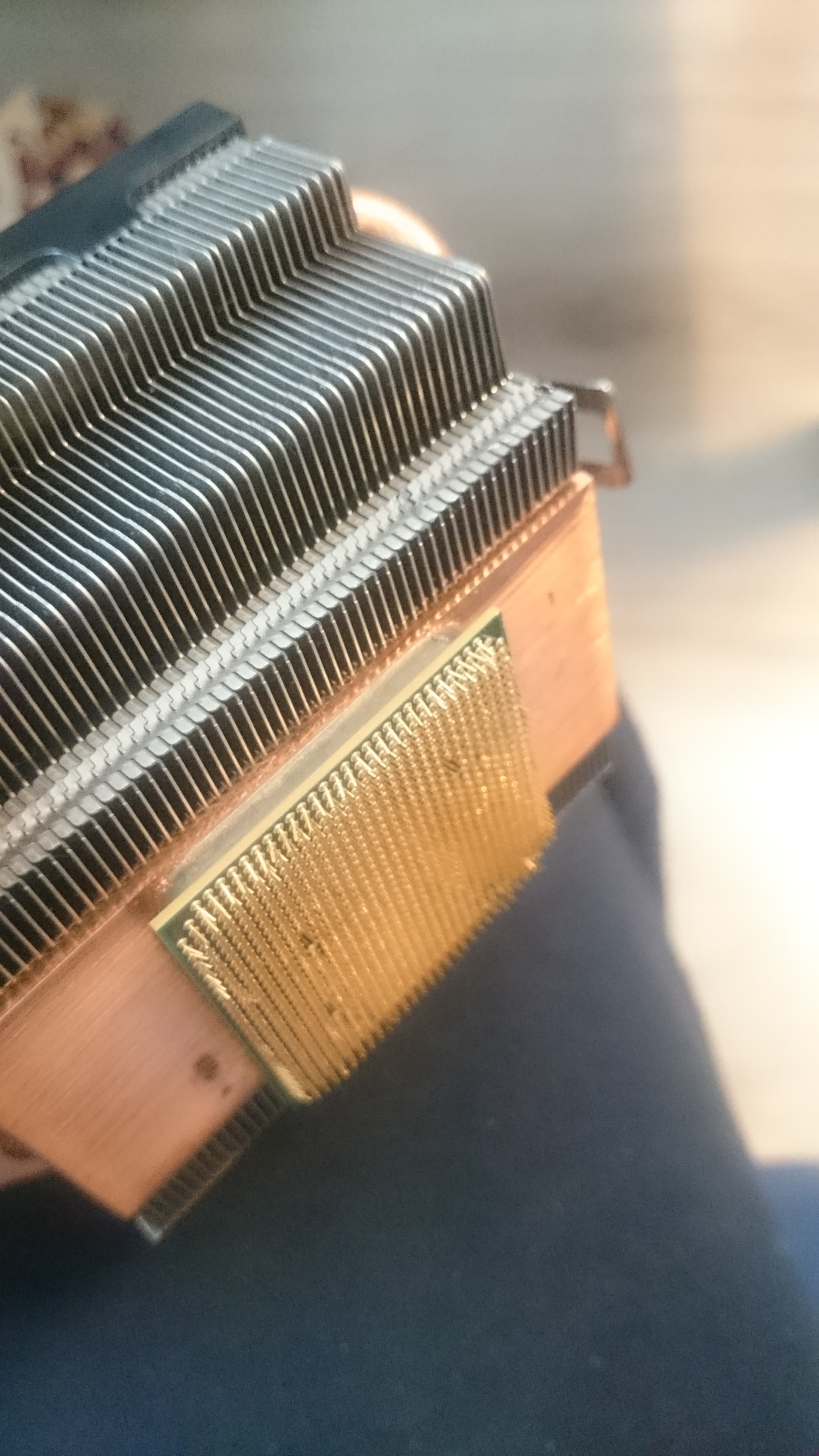 Ten obrázok je dosť nejasný, ale mne to pripadá ako keby bol ku chladiču pricínovaný - ten okraj medzi chladičom a cpu vyzerá ako cín.