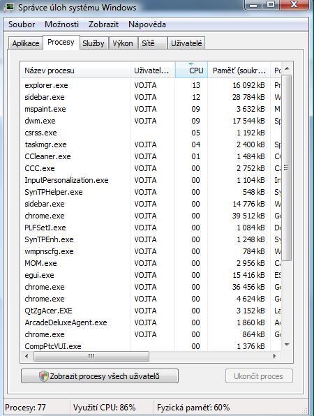 Můžeš sem dát snímek správce úloh seřazený podle vytížení procesoru?