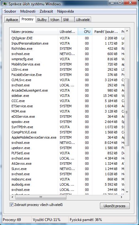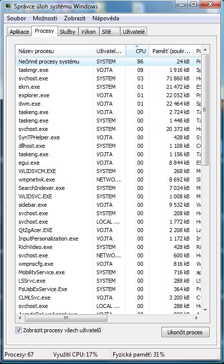 Ještě klikni na "Zobrazit procesy všech uživatelů".