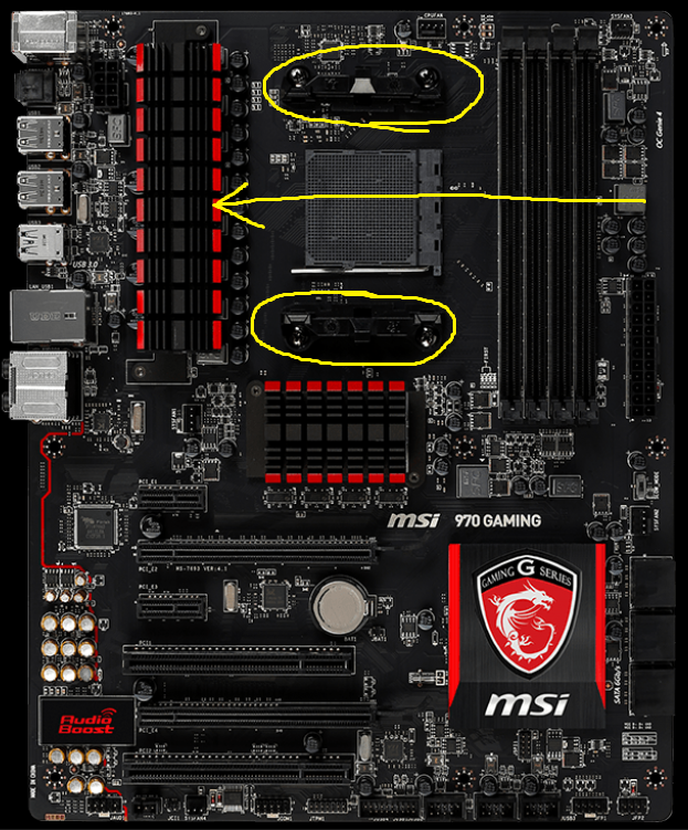To nebude jen o chladiči jako spíš o chlazení pasivů desky, máš ve skříni dobrý airflow? Zrovna tu MSI 970 Gaming jsem měl s přetaktovaným FX-8300 na 4,4GHz a problémy byly právě vysoké teploty čipsetu a napájecí kaskády, deska fakt nic moc efektivita a při vyšším vcore CPU by se snad usmažila, hlavně tam byl problém, že použili nekvalitní thermalpady, které začaly po nějakém čase vypouštět silikonový olej, který tekl po desce nebo prosakoval do PCB, což jsem ještě tehdy řešil vyčištěním desky a aplikováním nových thermapadů, ale moc se to nezlepšilo co se týče teploty vždycky to šlo 85°C+ a o pasiv se dala spálit ruka...