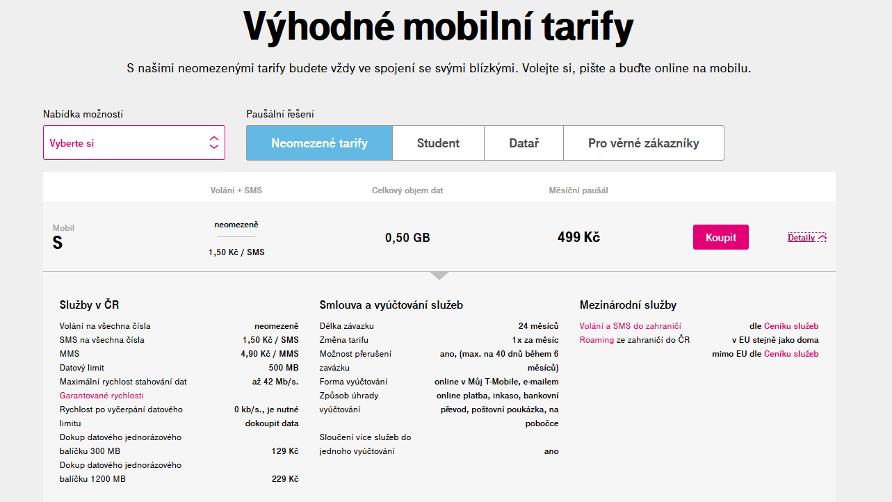 Jestli myslíš tento tarif, tak platíš SMS a máš o 1 GB dat méně!