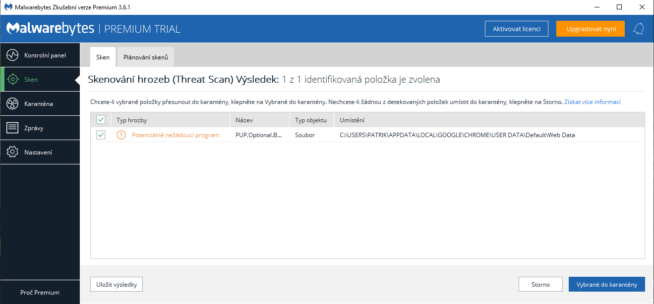 Malwarebytes mi hlasí PUP na jednom ze souboru viz. foto a když ho odstranim tak se vytvoří znovu a stále beze změny, i když ho odstranim ručně.