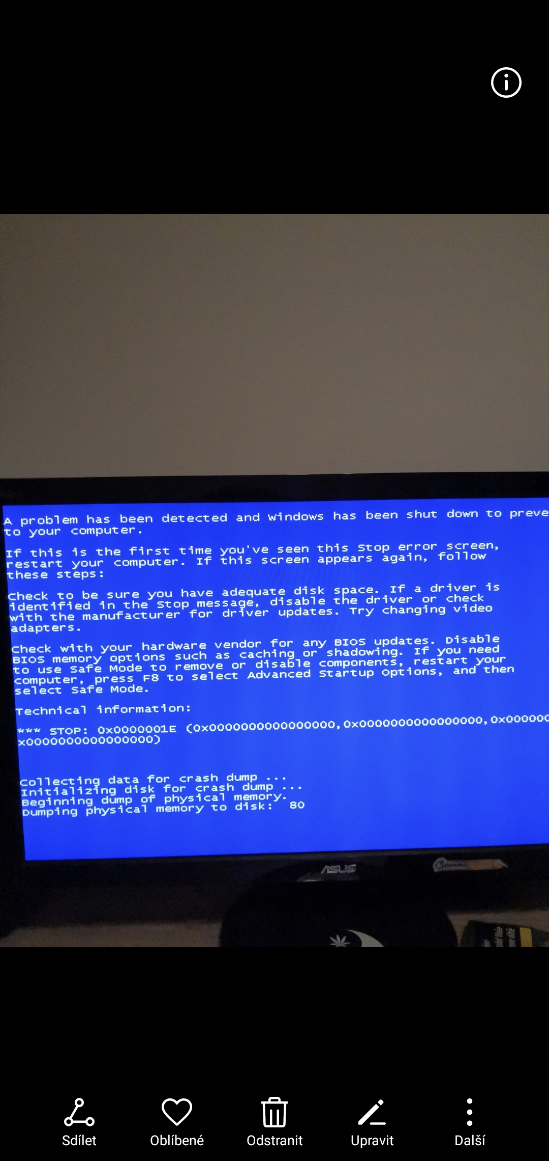 Zdravím parkrat do tejdne se mi z niceho nic objevi chybová hlaska viz foto.. Budu rad za každou radu. Diky