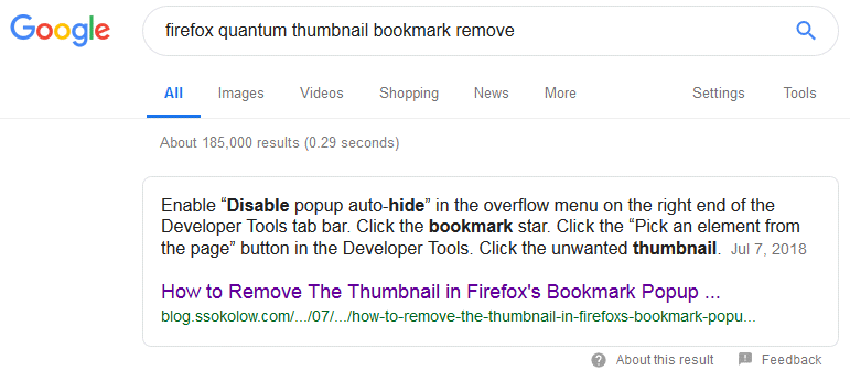 Jak odstranit ve Firefox Quantum náhled při úpravě url záložek (oblíbené)?