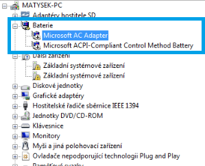 1) Vidis tam v polozkach [baterie] ? Jestli ano, tak na ni klikni. Mel by jsi tam videt neco na zpusob "Microsoft AC adapter " je tam i Microsoft ACPI_Compilant ?" jestli ne, klikni pravym tlacitkem mysi na tu ikonku baterie a zadej "Aktualizovat", co to vypsal ?