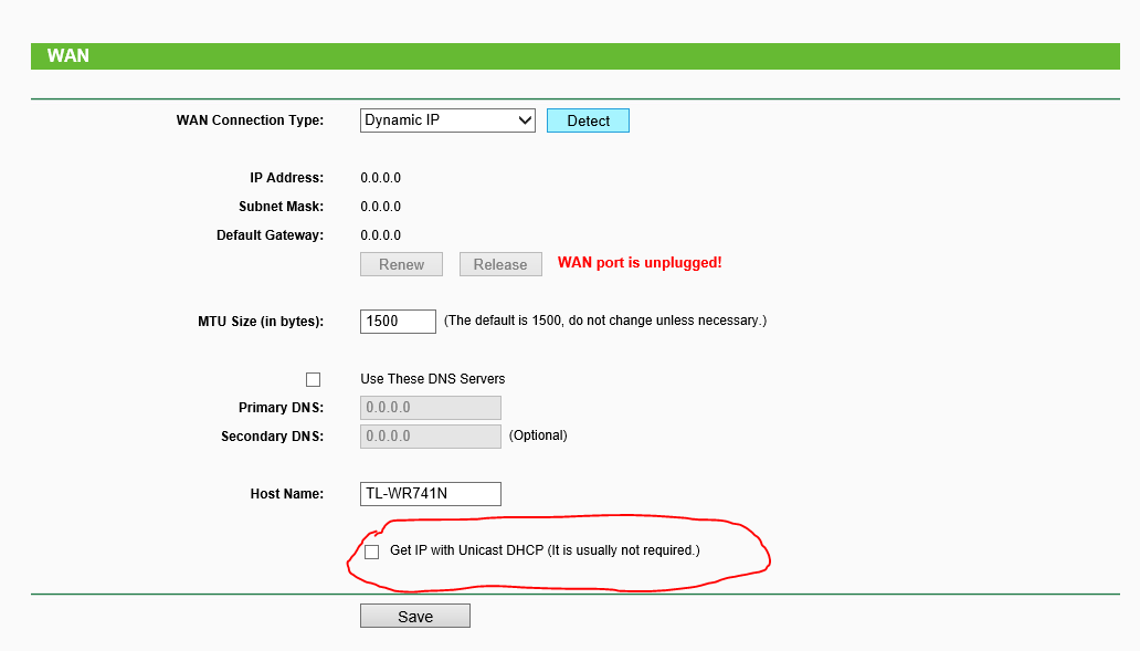 Udělal jsem vše a píše stále bez internetu. Nejsem si jistý jak je myšlen bod kde mám nastavit dhcp. Přikládám obrázek, pokud správně chápu mám pouze zaškrtnout "Get IP with the Unicast DHCP" a uložit?