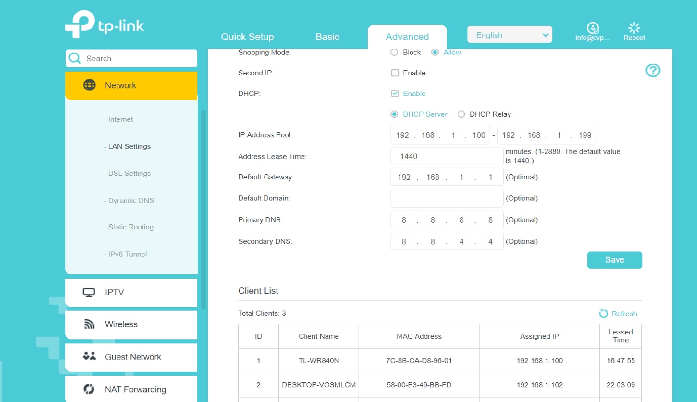 A kde v modemu najdu DNS Kabel v hlavním modemu mám připojený na Lan/Wan a u druhého modemu je přip…