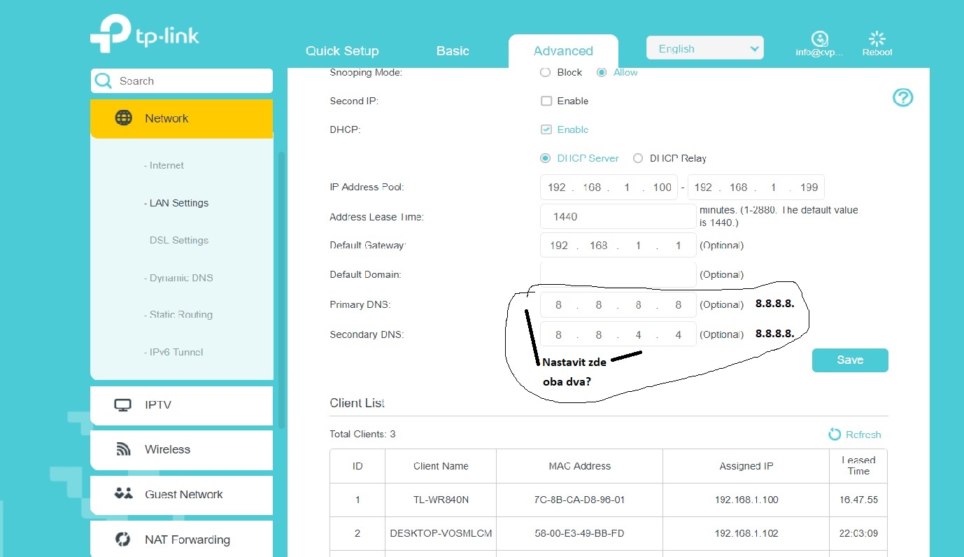 Takže mám nastavit ukázka. Nastavení u TL-WR840N viz příloha